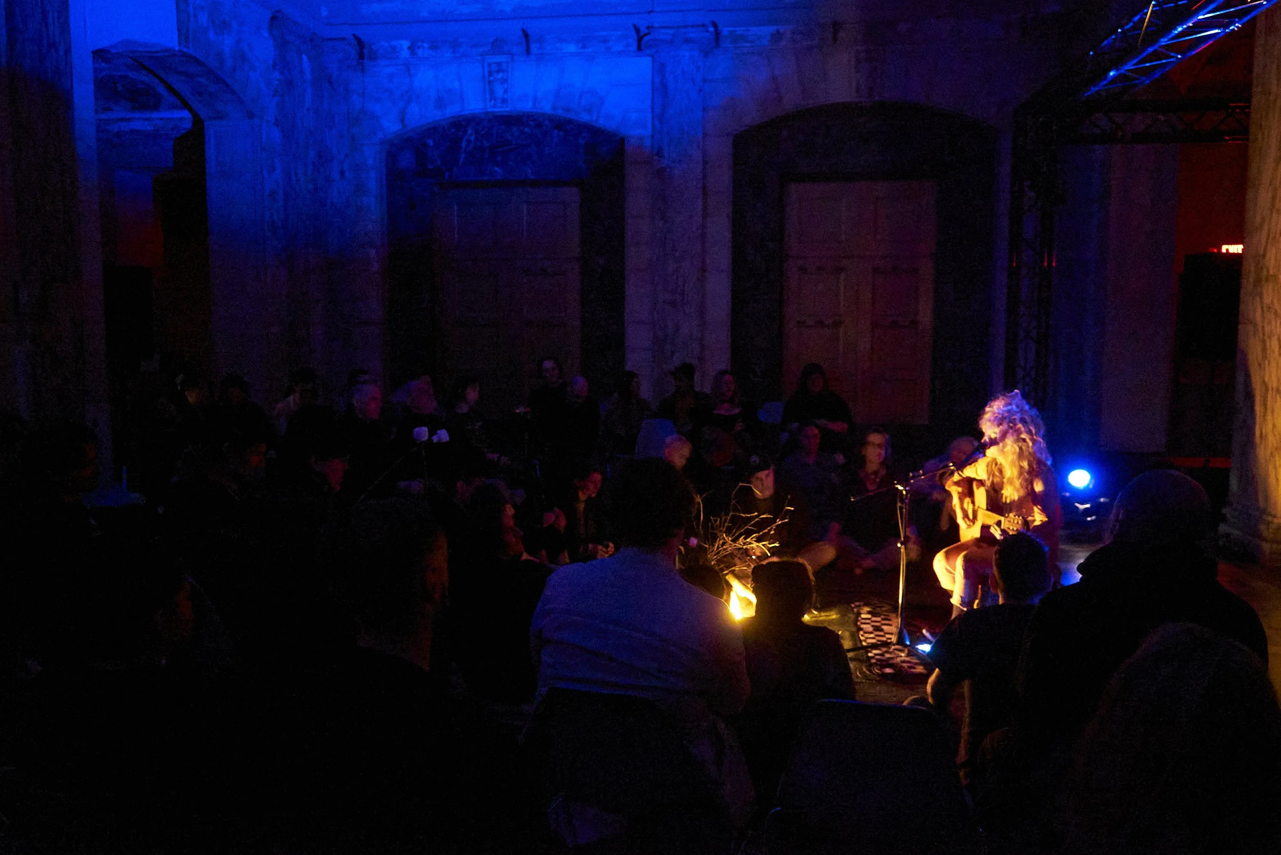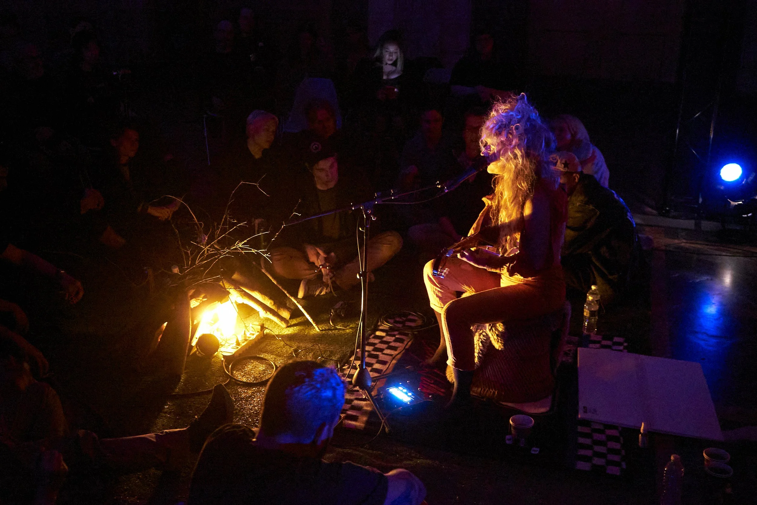 Led by Rage Peace Agent Taraka, participants sit in a circle around a simulated campfire as she plays banned songs on a stolen guitar. All are invited to chime in using random found objects to create improvised sonic textures inspired by John Cage’s vision of a Taoist anarchist society.”