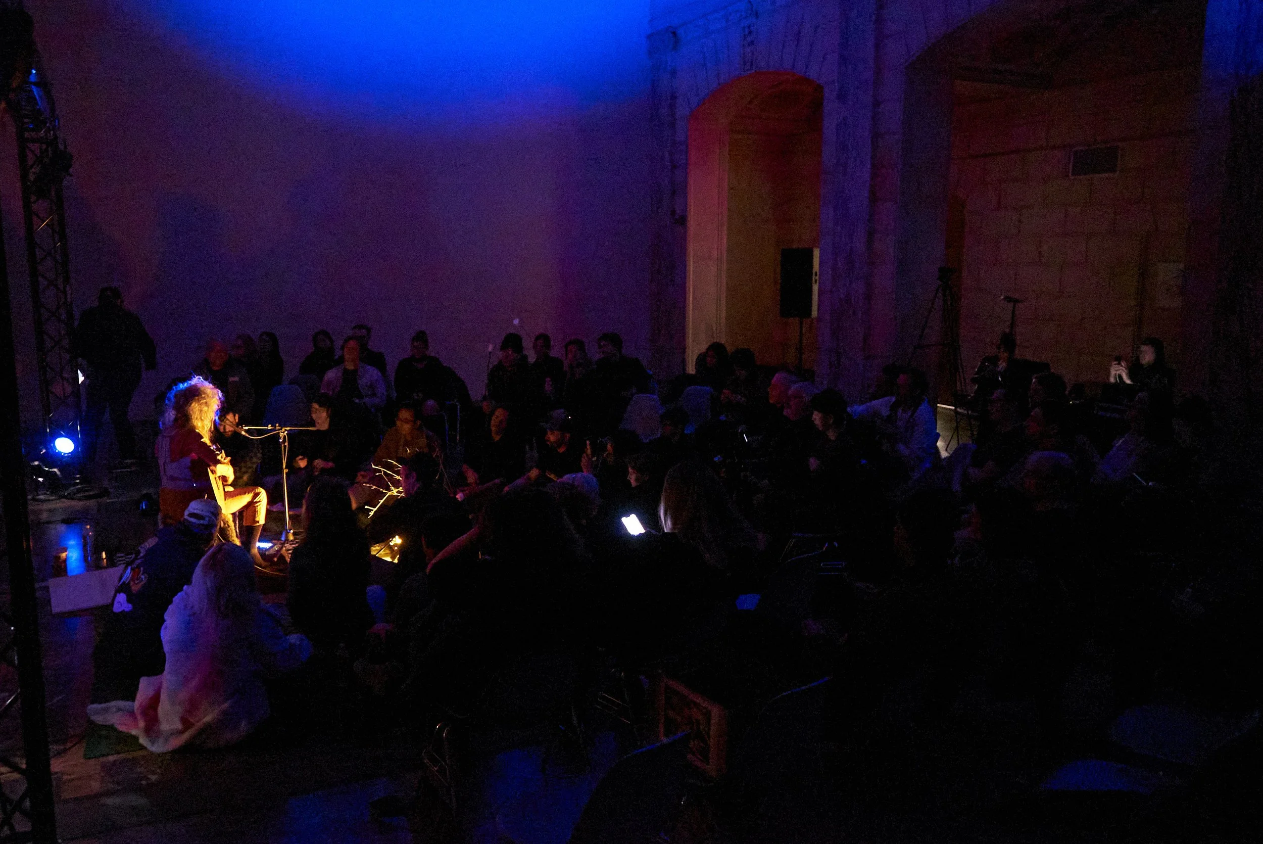 Taraka has spent over fifteen years exploring post-apocalyptic visions and music as a vehicle for utopia. On April 2nd, inspired by J.G. Ballard’s notion of a ‘science fiction of the next five minutes,’ Rage Peace Campfire Songs unfolds in an alternate world-line where a dystopian, technocratic AI governance system has banned non-AI concerts, forcing music to survive as clandestine ritual. For this rare solo performance, Taraka explores ‘campfire songs’ as a microcosmic invitation to imagine what forms of togetherness and collective healing are still possible.